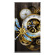 Antique dials with gold and brass gears, decorated with mechanical dragonfly on brown, striped background. Steampunk.