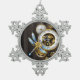 Steampunk Clock with Mechanical Dragonfly Snowflake Pewter Christmas Ornament