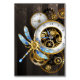 Antique dials with gold and brass gears, decorated with mechanical dragonfly on brown, striped background. Steampunk.