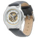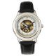 Antique dials with gold and brass gears, decorated with mechanical dragonfly on brown, striped background. Steampunk.