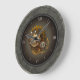 A combination of a metal background and a dark toned chequerboard artwork gives this round steampunk styles wall clock the appearance of depth.