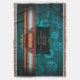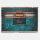 Steampunk series: A luxury steampunk style throw blanket for Lady and Gentleman Adventurers. The design is a fusion of steampunk and art deco. On a teal background of gears, it uses polished copper and silver-effect elements in an art deco design with plate for your initials. The embellishments are a nod in the direction of an octopus, made from a gear and flourishes. To give it the final steampunk look, a rusted metal grunge effect has been applied to the elements.