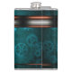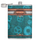 Steampunk, copper-look on teal cogwheels, Monogram Hip Flask