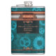 Steampunk, copper on teal gearwheels, Monogram Hip Flask