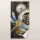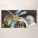 Antique dials with gold and brass gears, decorated with mechanical dragonfly on brown, striped background. Steampunk.
