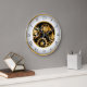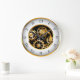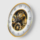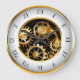 Antique dials with gold and brass gears, decorated with mechanical dragonfly on brown, striped background. Steampunk.