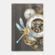 Antique dials with gold and brass gears, decorated with mechanical dragonfly on brown, striped background. Steampunk.