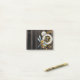 Antique dials with gold and brass gears, decorated with mechanical dragonfly on brown, striped background. Steampunk.