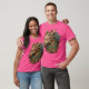 I give wanted to give this a 4 instead of a 5 because these Basic DARK T0shirts run unexpectedly SLIM or Narrow. Which is great if you do not have a potbelly, but I have a paunch. It isn't the shirt's fault that I've got a beer belly. The design and shirt itself is a quality cotton shirt. The color is more of a deep purple, but still a very pretty color. The Basic DARK T-shirts run a bit SLIMMER than the Basic Ts. The neck is a fraction narrower (or seems to be narrower) also. I'm a paunchy middle-aged woman and my neck is 12 inches (31cm) thick and the neckline fell about the same as in the photo of the man, and I had the desire to tug it a bit. So if you're a thick necked man or like loose shirts, be aware these are slimmer shirts. Once I get rid of my lockdown paunch it'll look great. The shirt washed well in cold water with no apparent bleeding. We don't have a dryer, so it hung dry. Did not shrink. Love the colors and the design. The design looks smaller on my shirt than it does on the model on-line. But still, it looks good on the shirt. The printing looks as it does on the model, just the size seems fractionally smaller. Washed garment in cold water, hung dry and design appeared unaffected.