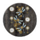Antique dials and keys with gold and brass gears, decorated with mechanical, steampunk dragonflies on brown, striped background.