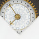 Antique dials and keys with gold and brass gears, decorated with mechanical, steampunk dragonflies on brown, striped background.