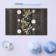Antique dials and keys with gold and brass gears, decorated with mechanical, steampunk dragonflies on brown, striped background.