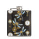 Steampunk Dragonflies on brown striped background Hip Flask