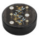 Steampunk Dragonflies on brown striped background Hockey Puck