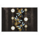 Antique dials and keys with gold and brass gears, decorated with mechanical, steampunk dragonflies on brown, striped background.