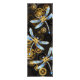 Antique dials and keys with gold and brass gears, decorated with mechanical, steampunk dragonflies on brown, striped background.