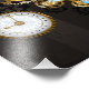 Antique dials and keys with gold and brass gears, decorated with mechanical, steampunk dragonflies on brown, striped background.