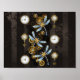 Antique dials and keys with gold and brass gears, decorated with mechanical, steampunk dragonflies on brown, striped background.