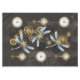 Antique dials and keys with gold and brass gears, decorated with mechanical, steampunk dragonflies on brown, striped background.