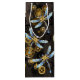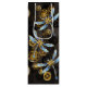 Antique dials and keys with gold and brass gears, decorated with mechanical, steampunk dragonflies on brown, striped background.