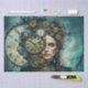 Transform your craft project with this exquisite decoupage paper featuring a captivating steampunk design. A woman, adorned with elements of brass and gold, is surrounded by vintage clocks and intricate gears. The background is a stunning turquoise, blending various shades to create a dynamic and mesmerising effect. Perfect for any decoupage enthusiast, this tissue paper brings a touch of elegance and timelessness to your creations. Ideal for decorating boxes, frames, and other surfaces, this design will add a unique, artistic flair to your projects.