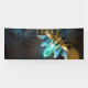Steampunk firefly with blue transparent wings and green light bulb on worn, brown, textured background. Steampunk style.