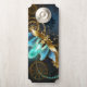 Steampunk firefly with blue transparent wings and green light bulb on worn, brown, textured background. Steampunk style.