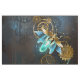 Steampunk firefly with blue transparent wings and green light bulb on worn, brown, textured background. Steampunk style.