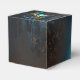 Steampunk firefly with blue transparent wings and green light bulb on worn, brown, textured background. Steampunk style.