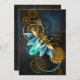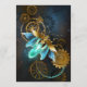 Steampunk firefly with blue transparent wings and green light bulb on worn, brown, textured background. Steampunk style.