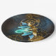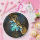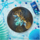 Steampunk firefly with blue transparent wings and green light bulb on worn, brown, textured background. Steampunk style.