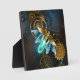 Steampunk firefly with blue transparent wings and green light bulb on worn, brown, textured background. Steampunk style.