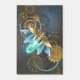 Steampunk firefly with blue transparent wings and green light bulb on worn, brown, textured background. Steampunk style.