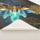 Steampunk firefly with blue transparent wings and green light bulb on worn, brown, textured background. Steampunk style.