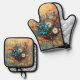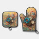 Steampunk Floral Oven Mitt & Pot Holder Set