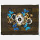 Steampunk Gears and Blue Butterflies Fleece Blanket