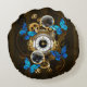 Steampunk Gears and Blue Butterflies Round Cushion