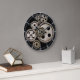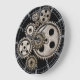steampunk gears cogs metal machine clock. For lovers of the steam punk genre this mix of cast iron, shiny and dull metallic watch engine clock is a dream gift. The ancient looking gears and cogs of the clock and the iron numbers on a black panel make this mechanical engine clock an easy to read yet interesting machine and a perfect victorian steampunk gift. Background can be customized to a color of your own choosing by clicking CUSTOMIZEIT>EDIT>BACKGROUND and choose your color from the menu presented. To return to the original and start again simply refresh the page. Available in small and large round clock or square clock
