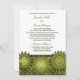 Offbeat and quirky Steampunk Gears Wedding Invitation in olive green featuring a trio of gears and a grungy chequered pattern. This unique and stylish invitation is perfect for your alternative steampunk themed wedding! Easy to customise, simply add the details of your wedding in the text fields provided. Click on "Customise It" to find additional personalisation options.