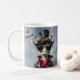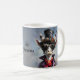 The steampunk giraffe features a stylish coffee cup with the phrase "Sip Happens" elegantly written on it. The cup is white with a sleek, modern design, and the phrase is displayed in a playful and trendy font. The background of the image is a cosy coffee shop setting, with warm lighting and rustic wooden tables. This image perfectly captures the humour and casual vibe of the phrase, making it a delightful addition to any coffee lover's collection. Customisable cup
