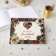 Pretty wedding personalised bride and groom's names and heart photo guestbook with a steampunk theme. Shiny metal flowers in gold, copper and burgundy paisley background.