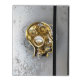 Conceptual, mechanical, human head with antique manometer and metal gears against grey industrial background. Steampunk style.