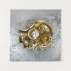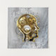 Conceptual, mechanical, human head with antique manometer and metal gears against gray industrial background. Steampunk style.