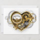 Mechanical, volumetric, steampunk heart with pressure gauge, steel and gold gears on white background. Steampunk style.