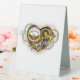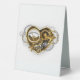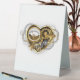 Mechanical, volumetric, steampunk heart with pressure gauge, steel and gold gears on white background. Steampunk style.
