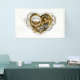 Mechanical, volumetric, steampunk heart with pressure gauge, steel and gold gears on white background. Steampunk style.