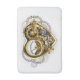 Mechanical, volumetric, steampunk heart with pressure gauge, steel and gold gears on white background. Steampunk style.