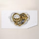Mechanical, volumetric, steampunk heart with pressure gauge, steel and gold gears on white background. Steampunk style.