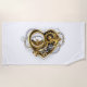 Mechanical, volumetric, steampunk heart with pressure gauge, steel and gold gears on white background. Steampunk style.