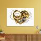 Mechanical, volumetric, steampunk heart with pressure gauge, steel and gold gears on white background. Steampunk style.